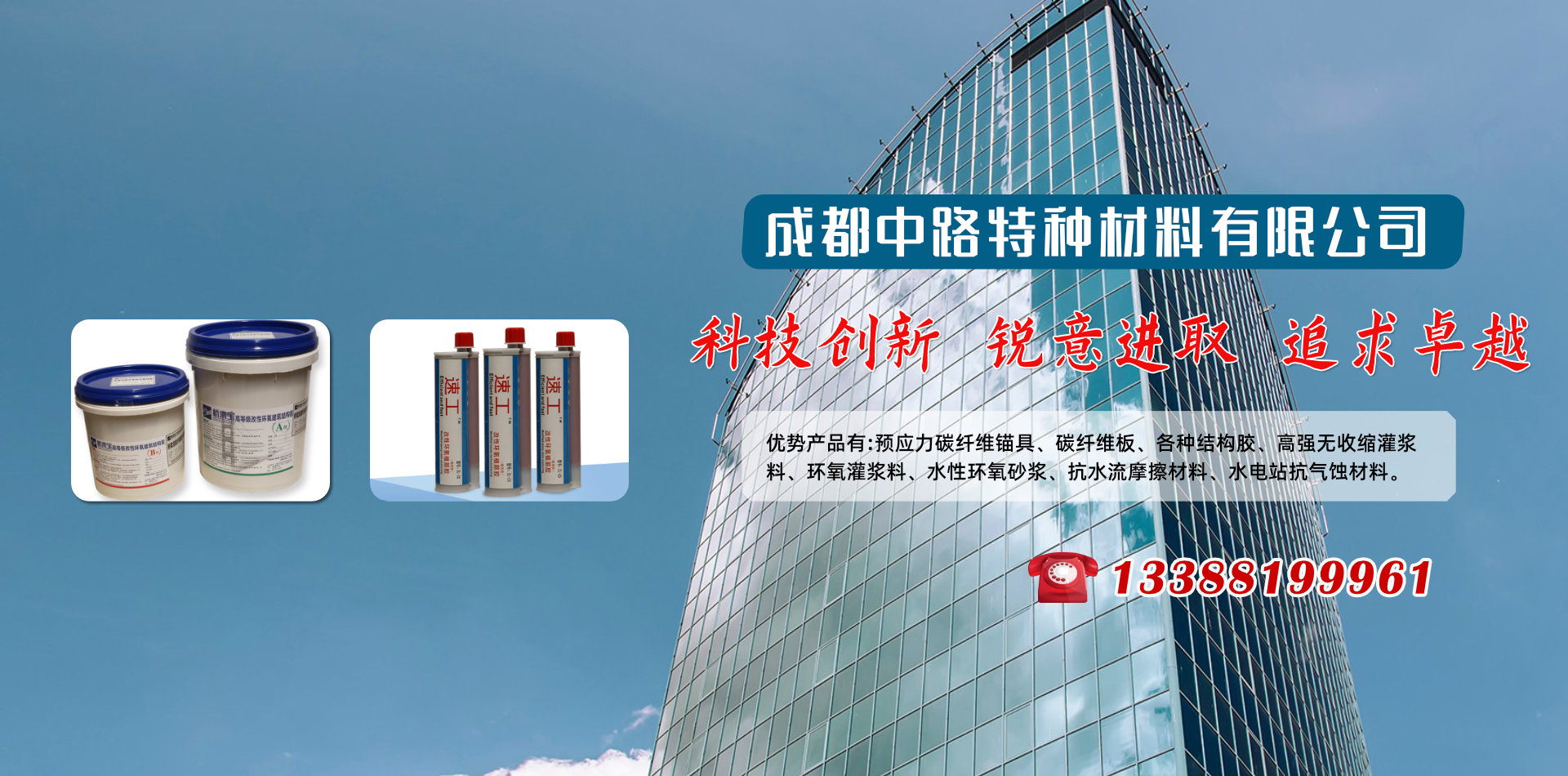成都中路特種材料有限公司借助清華大學(xué)高分子材料學(xué)科、晨光化工研究院、西南交通大學(xué)、四川交通職業(yè)技術(shù)學(xué)院科研技術(shù)平臺成為一家集新材料研發(fā)、銷售、技術(shù)服務(wù)和施工于一體的專業(yè)服務(wù)公司,優(yōu)勢產(chǎn)品有:預(yù)應(yīng)力碳纖維錨具、碳纖維板、各種結(jié)構(gòu)膠、高強(qiáng)無收縮灌漿料、環(huán)氧灌漿料、水性環(huán)氧砂漿、抗水流摩擦材料、水電站抗氣蝕材料和研發(fā)各種特殊用途膠黏劑產(chǎn)品地處西南腹地成都,業(yè)務(wù)覆蓋四川各大中小城市、重慶、云南、昆明、新疆、西藏等區(qū)域。產(chǎn)品涵蓋各種加固施工材料、施工設(shè)備及施工配件,品牌有威士邦等aa進(jìn)口品牌,同時批發(fā)銷售國產(chǎn)高、中、低端品牌,為客戶提供全面參考。
